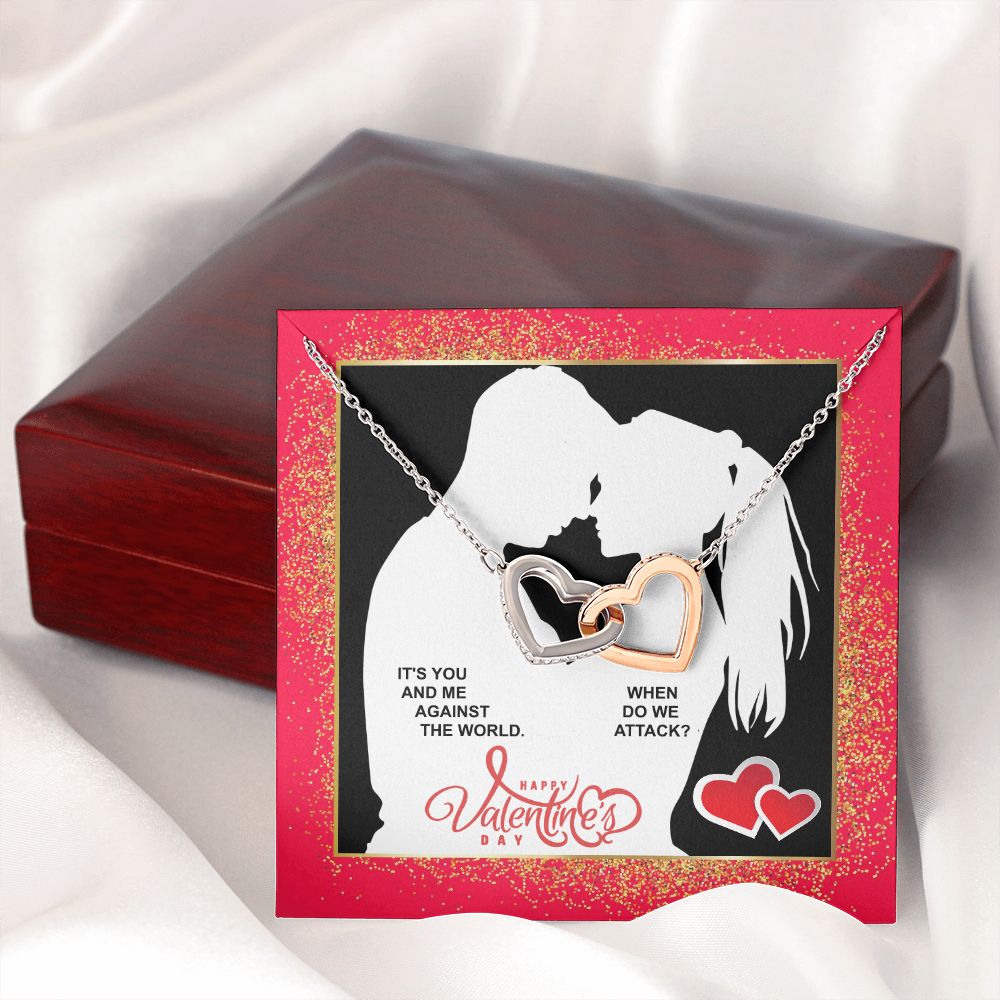 You & Me Against The World Interlocking Hearts Necklace
